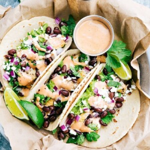 - In a small bowl, whisk together the spicy ranch and honey BBQ sauce (start with 3 tablespoons, taste, and add the 4th tablespoon if desired). Top tacos with the sauce.
