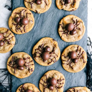Prepare these Chewy Chocolate Chip Cookiesย as the base, or use refrigerated cookie dough or store-bought cookies. Follow the rest of the recipe to decorate with bats on top.