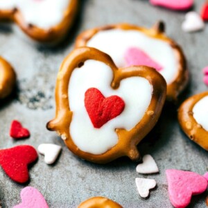If you canโt tell from the amount of chocolate + pretzels on my site, chocolate-covered pretzels are one of my favorite treats!ย These are seriously simple to make and, dare I say, even better than chocolate-covered pretzels because there is MORE chocolate! You could also use dark or milk chocolate in the center of these pretzels instead of white chocolate!