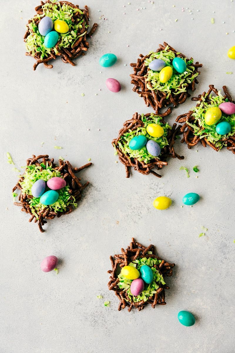 These are the treats my mom made EVERY single Easter for us growing up (and she still does)! Itโs not Easter without these little egg nests and we all love them. Of course, I had to keep the tradition up with my own family! (Although, my boys just picked the candies off, so weโll have to work on that.)