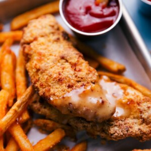 - Serve tenders hot with sauce for dipping! These don’t stay crispy when stored, so I recommend cooking only enough for one meal.