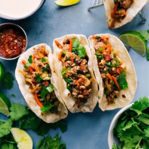 Flour tortillas are best in this recipe and we prefer the smaller or street-sized flour tortillas best. These TortillaLandยฎ tortillas are our favorite โ theyโre easy, so fresh tasting, and completely perfect right off the heat (not sponsored).