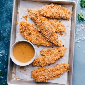- Serve chicken tenders right out of the oven with lots of sauce on the side for dipping! These donโt stay crispy when stored, so I recommend cooking only enough for one meal.
