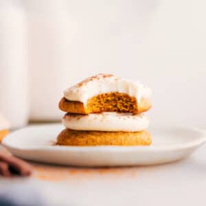 These are my go to holiday pumpkin cookies for years now. I am lazy about the frosting bit however. I follow the cookie recipe to the “t” but instead I do them as drop cookies and add 3/4 cups of chocolate chips folded in. My family loves them and they turn out perfect every time.