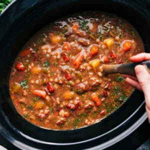 Slow Cooker Beef and Barley Soup is hearty and delicious. Just pop everything into your crockpot in the morning, let it simmer all day, and enjoy it in the evening!