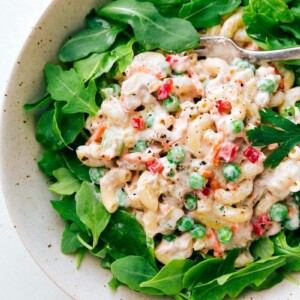 This salad is one of my all-time favorite creamy pasta salads. Iโve taken my momโs โfamousโ macaroni tuna salad and tweaked it over the years until itโs just how we like it. And I couldnโt be more excited about the results!