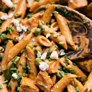 - Pasta. I like penne, but there are so many different types of noodles that will work โ farfalle, rigatoni, fusilli, mostaccioli, to name a few.