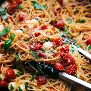 I fell in love with Caprese while visiting Italy, and after taking a few cooking classes there, I was inspired to create this Caprese chicken recipe. I make it all the time, but with little ones who aren’t always fans of just protein, I knew I had to mix things up. So, I added pasta, their favorite!