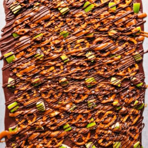 | Soft caramels + heavy cream | Melt into a smooth drizzle, stirring constantly over low heat. If the caramel gets too hot, it will harden too much once on the bark. |