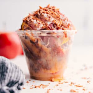 And today, Iโm excited to share my copycat of Zupas caramel apple dessert cups. These new menu items have created quite the buzz all over social media, and for good reason! Theyโre stacked with fresh apples, a rich milk chocolate drizzle or golden-spice drizzle, and topped with coconut and cinnamon.