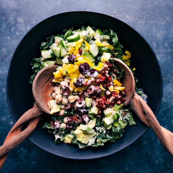 Jennifer Aniston Salad in a big bowl dressed and ready to be enjoyed.