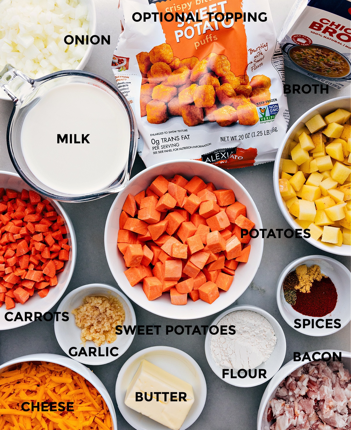 Iโve always loved potato soup, but I wanted to make it a little more interesting. After making my classic potato soup, I started wondering how sweet potatoes would taste in the mix.