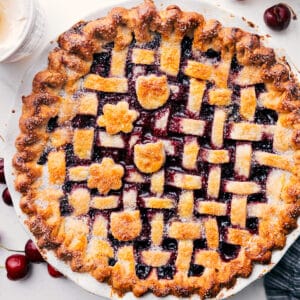 How do I know when this Cherry Pie Recipe is done? Look for a deep golden brown crust and filling thatโs bubbling through the lattice or edges for at least 5 minutes.