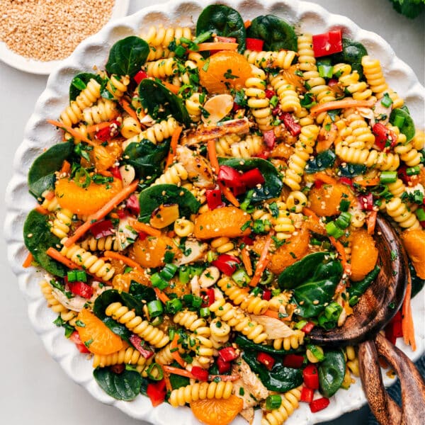- Toss salad gently with a silicone spatula to keep the pasta intact.