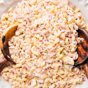 I love pasta salads. I basically live on this Mexican street corn pasta salad or this Mediterranean tuna salad all summer long! My husband calls them a side, but if thereโs meat involved, I say itโs a meal. And this one has both chicken and bacon. Soโฆtotally meal material! ๐