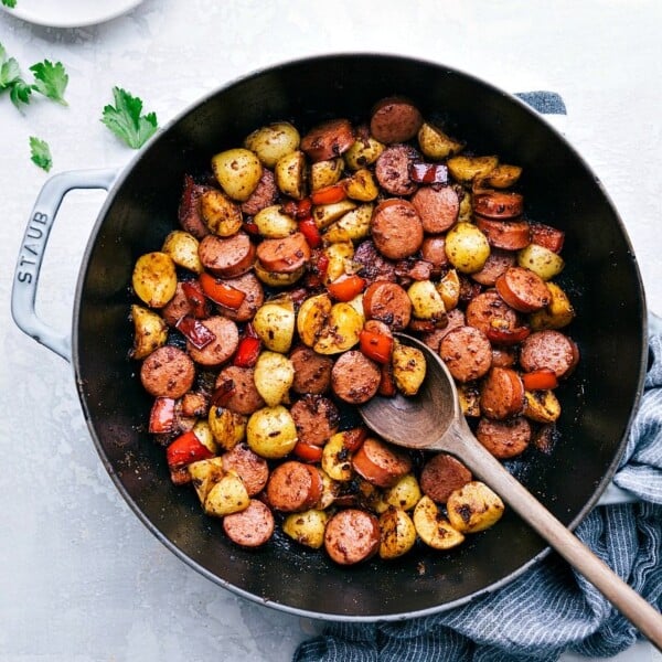 This is a go-to meal at my house! My family can’t get enough, and I’ve made it so often, I could whip it up in my sleep. It’s the perfect easy weeknight dinner or a great way to use up those leftover odds and ends in the fridge!