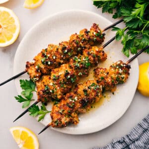 I havenโt tested this in the air fryer, but hereโs my best guess: Preheat the air fryer to 390ยฐF. Cook the chicken for 10โ12 minutes, or until it reaches 160ยฐF on a meat thermometer. If youโre using wooden skewers, soak them well first to prevent them from catching fire in the air fryer.