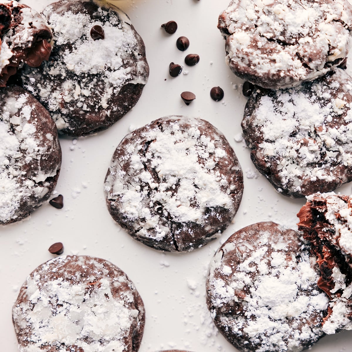Chocolate Crinkle Cookies are thick, soft, and fudgy with plenty of chocolate chips. The powdered sugar coating makes them impossible to stop eating!