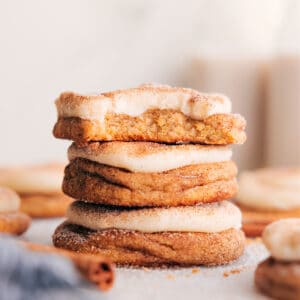 I made a big batch of cream cheese frosting for my Pumpkin Cookies and had a little left in the bowl. On the counter were snickerdoodles I was re-shooting. I piped a quick swirl of frosting on one, took a bite, and just stood there. It was so good.