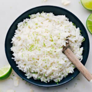 This Coconut Rice Recipe takes regular rice to the next level with rich, creamy coconut flavor, a hint of sweetness, and a burst of fresh lime!