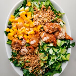Here’s the drill: Every week, I kick things off by prepping all the salad toppings (dicing mangos, slicing up the cucumbers, chopping the nuts, and making a mega batch of the dressing). Then, during the week, it’s a cinch! I just air-fry some shrimp, toss them onto my greens, sprinkle on the prepped toppings, drizzle that dressing, and boom – instant deliciousness! It’s a no-brainer lunch that’s both filling and incredibly satisfying.