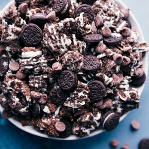 Cookies and Cream Muddy Buddies bring that iconic cookies and cream flavor to every crunchy, chocolatey bite, like eating Oreos by the handful!