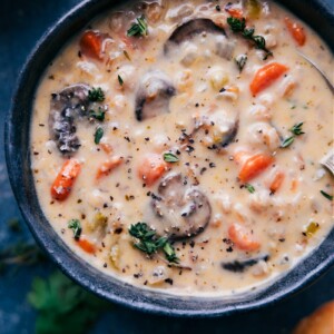 The mushrooms give it such rich, earthy flavor, the carrots add a natural sweetness, and the farro makes it hearty and filling. Now itโs not just my dadโs go-to, but one of my favorite soups to make (and eat!) too.