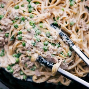 This Creamy Tuna Pasta comes together fast. Hot noodles and peas mingle in a silky garlic-Parmesan cream, then get topped with flaky tuna and a bright squeeze of lemon. Hearty, simple, and full of flavorโitโs bound to become a family staple.