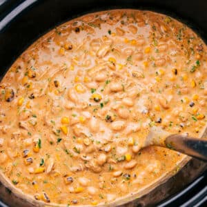 Creamy Crockpot White Chicken Chili is so easy, just toss everything in! With sweet corn, chiles, chicken, and white beans, itโs packed with flavor!