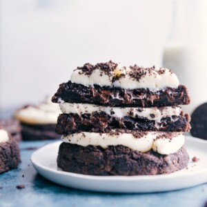 Freezing: Instead of freezing already-baked cookies,ย freeze the dough! Drop the cookie dough balls on a large sheet pan and freeze until solid. Once solid, transfer the frozen cookie dough balls to an airtight container or bag and freeze for up to three months. You can bake these Oreo cookies straight from the freezer. There is no need to thaw, but you may need to add a few extra minutes to the baking time.