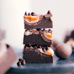 I love fudge, so I had to make an Easter version of my favorite fudge recipeโand itโs amazing! Itโs easy, delicious, and packed with a creamy chocolate base topped with mini fondant-filled creme eggs.