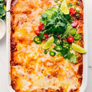 “I made this today and I had to come back to thank you for the recipe! I don’t make enchiladas often but this casserole is so easy and delicious I know I will be making it A LOT. This was the 3rd recipe I have made of yours and I’m excited to make many more of your delicious dishes! “