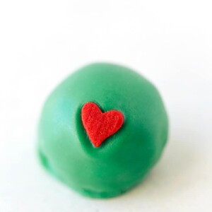 - Once the triangles are chilled, melt the red candy melts according to package directions. You may need a teaspoon (or a few) of vegetable oil to get the chocolate thin enough to dip in. Every chocolate is a bit different, so if needed, I just add the oil slowly until the chocolate coats the truffles well.)