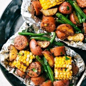 - Stovetop (no foil): Throw the entire mixture (except the corn) into a large Dutch oven (or half of the mixture into a large skillet) over medium-high heat. Stir occasionally until the veggies are crisp-tender (about 12-15 minutes), adding in additional butter or olive oil as needed. (I like using a combination of butter and oil when cooking on the stovetop.) Grill or boil the cobs of corn separately or stir in frozen corn near the end.