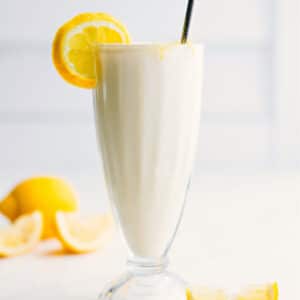 Best enjoyed right after blending while thick and frosty. To prep ahead, freeze in a shallow container, then thaw slightly and re-blend before serving. Texture will be slightly less creamy.