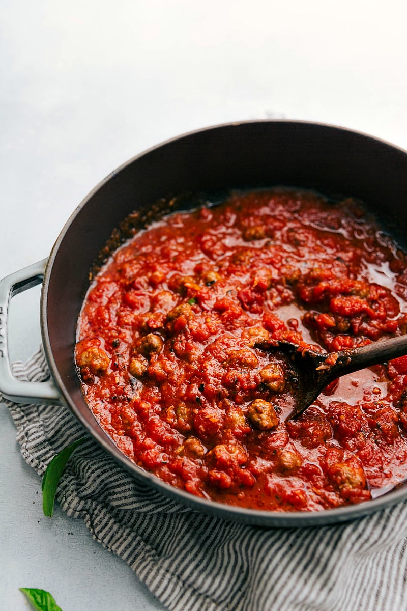 - Cook meatballs in sauce: If the sauce thickens too much, add a little more water or broth to thin it out.