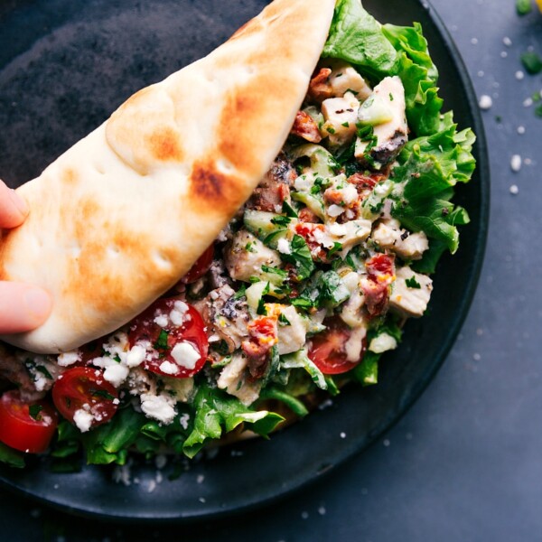 • To char pitas: Spray both sides of the pita with cooking spray (or brush lightly with oil) and char directly over the gas flamesย (at medium to medium-low heat) for a few seconds. Use tongs to flip until pitas are lightly charred.