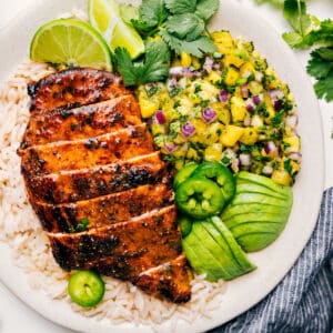 A huge hit with my family! Will now be a staple meal! The marinade is simple delicious and pineapple salsa paired so nicely with the grilled chicken and rice. Loved it!