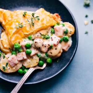 After a few rounds of testing, this version was the clear winner. The potatoes cook right in the creamy sauce so they get super tender and full of flavor, the ham adds that perfect smoky bite, and the puff pastry bakes up golden and crisp on top. It feels a little elevated, but itโs actually really simple to make.