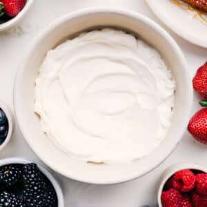 This Whipped Cream Recipe is light, fluffy, and perfectly sweet. It makes pancakes, waffles, crepes, pies, and fresh fruit feel extra special. And it’s so easy to make!