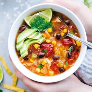 - Serve bowls of soup with your favorite toppings. I love freshly shredded cheese, a large spoonful of sour cream, additional cilantro, chopped avocado or guac, fresh lime, and lots of tortilla strips!