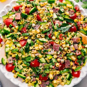 I live off pasta salads in the summer, and between this and my Marry Me Chicken Pasta Salad, I feel fully prepared for the warm weather.