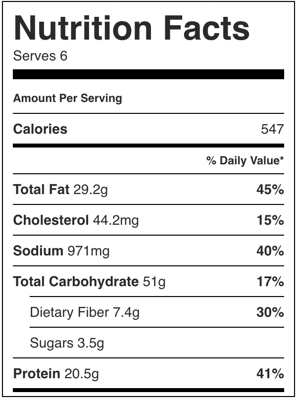 Nutrition information is automatically calculated, so should only be used as an approximation.
