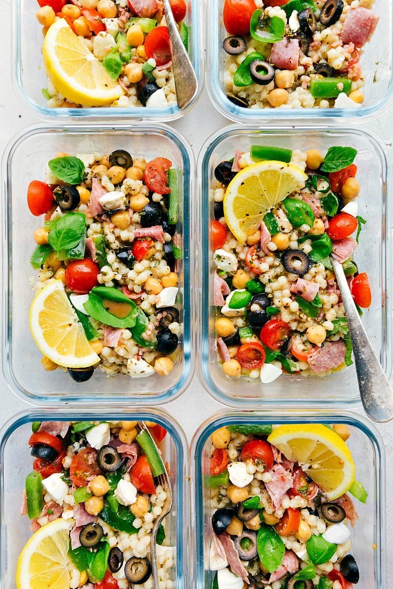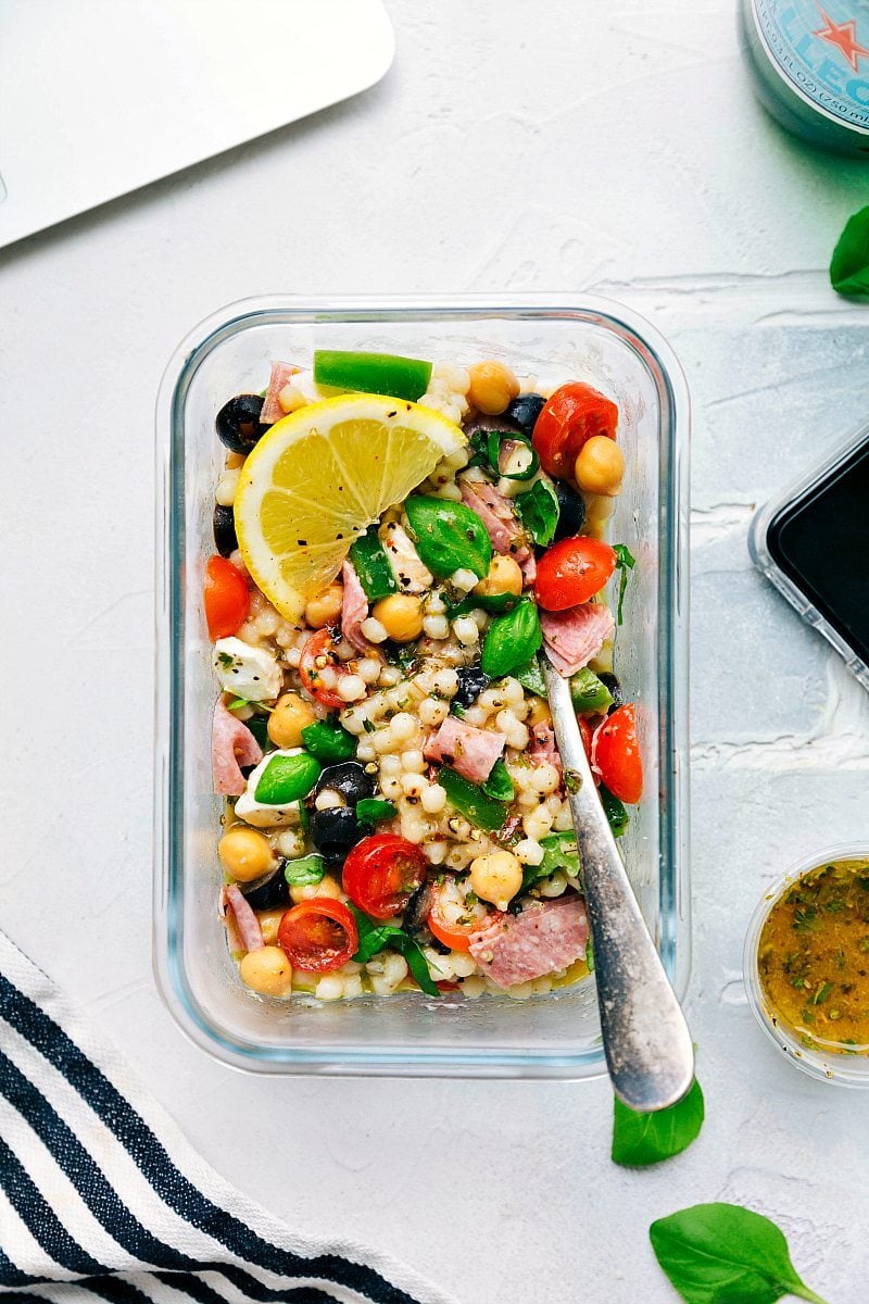 Last week I shared a Greek Couscous Salad and loved seeing the dozens of recreations on social media and sent through email (If you make a recipe and share it on Instagram make sure to tag me @chelseasmessyapron so I can see it!). So many of you enjoyed that last recipe and asked for similar meal prep options/healthier salads so I got to work! And I am thrilled with how this Italian version turned out; I hope you all love it as much as my family has!