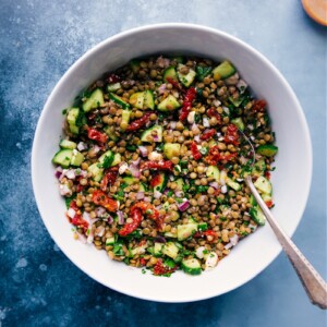 We could eat this lentil salad for every meal! It fits our vegetarian lifestyle perfectly and allows us to get the protein we need while enjoying our meal! Thanks Chelsea!