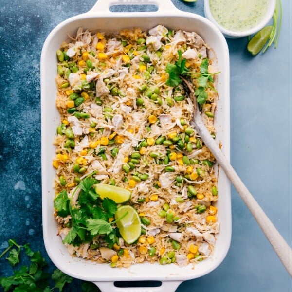 This one-pot meal has it all: rice, veggies, and protein! But if you want extra flavor, here are two favorite toppings: