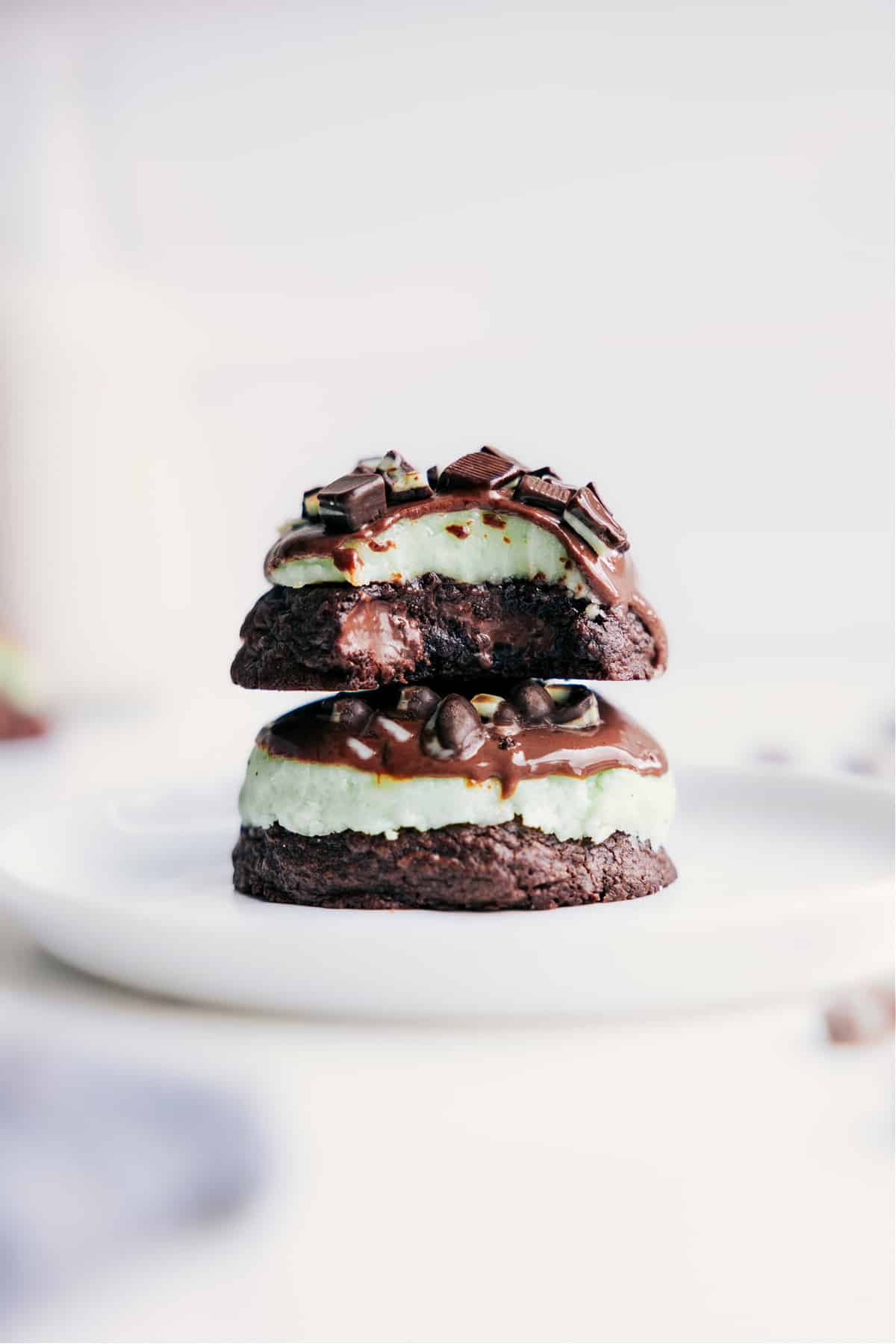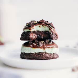 I was in the middle of making Mint Brownies when I had a lightbulb moment: these NEED to be cookies. A few tests later and I was completely obsessed. The brownie-style cookie base is thick, fudgy, and loaded with chocolate, the mint frosting is perfectly sweet and creamy, and the chocolate topping totally seals the deal.