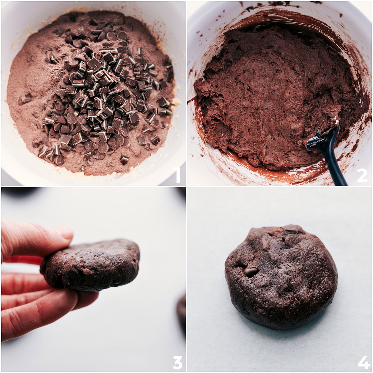 - Stir in the mint baking chips and milk chocolate chips (see note 2). Cover the dough tightly and refrigerate for 20–30 minutes.