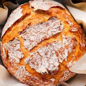This bread is best baked in a hot 5.5 or 6-quart cast-iron Dutch oven pot. The pot creates steam to give the bread a crispy crust.