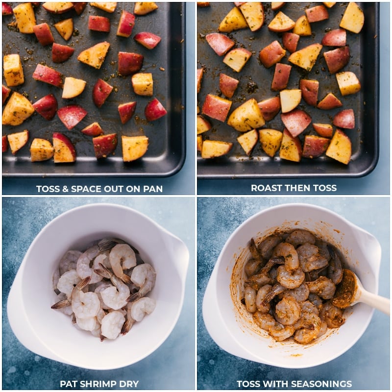 While the oven is preheating, we whip together a seasoning blend that we use three ways in our Shrimp and Sausage Recipe. Itโs an outstanding blend โ we use a combination of dried herbs, spices, and then both butter and olive oil. The combo of butter and olive oil gives us the best of both worlds since while the butter is giving the shrimp and veggies color (and flavor), the olive oil is ensuring good roasting and caramelization (more flavor).